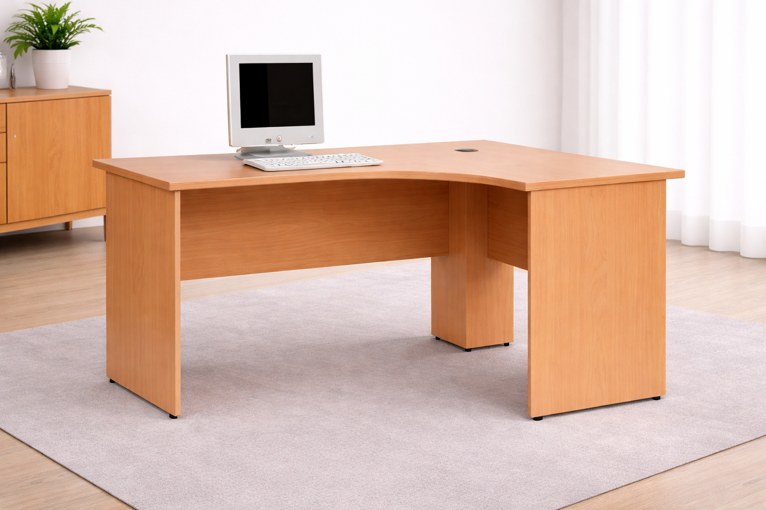 Constructed from high-quality materials, this office desk is designed to handle the demands of daily commercial use. The sturdy panel legs provide excellent stability, while the scratch-resistant surface ensures long-term durability.